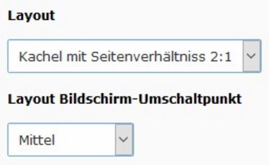 Das Auswahlfeld "Layout" wurde mit Kachel-Layouts ergänzt und zur besseren Darstellung der Layouts auf den verschiedenen Bildschirmgrössen wurde das Auswahlfeld "Layout Bildschirm-Umschaltpunkt" hizugefügt.